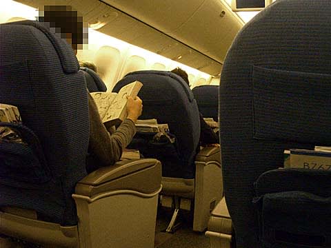 睡眠不足を移動中に解消するために、睡眠薬を持ってきて、チビチビと服用を始める。このリクライニングチェアは秀逸で、本当に心地よい。が、ここで眠らないようにしないといけない。