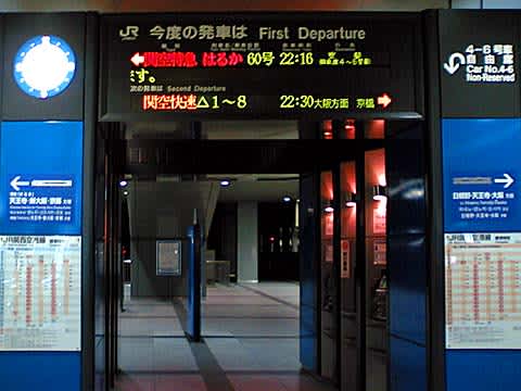 遅れているはるかを先に通すために、この関空快速も影響を受けると思っていたが、意外にも定刻の20時18分に関空に到着。いつもなら、特急を先に通すことに専念するはずだが珍しいこともあるものだ。