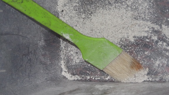 これまたBBQ用の刷毛で根の部分に粉をまぶします。