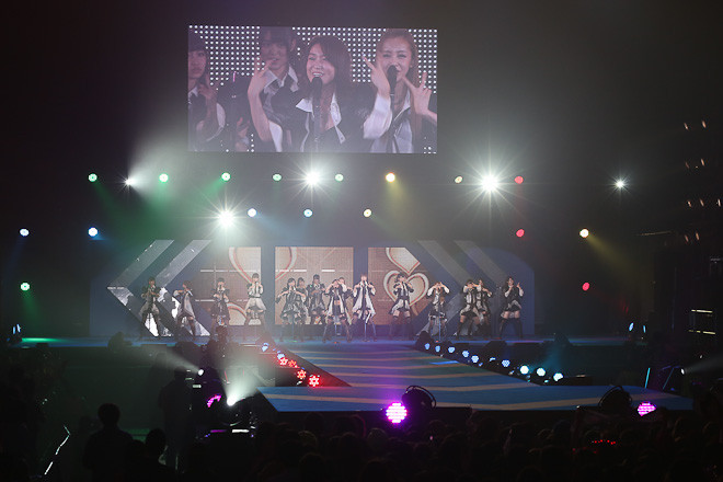 ヘビロテの前にMC。まず、こじはる、たかみな、ゆきりん。