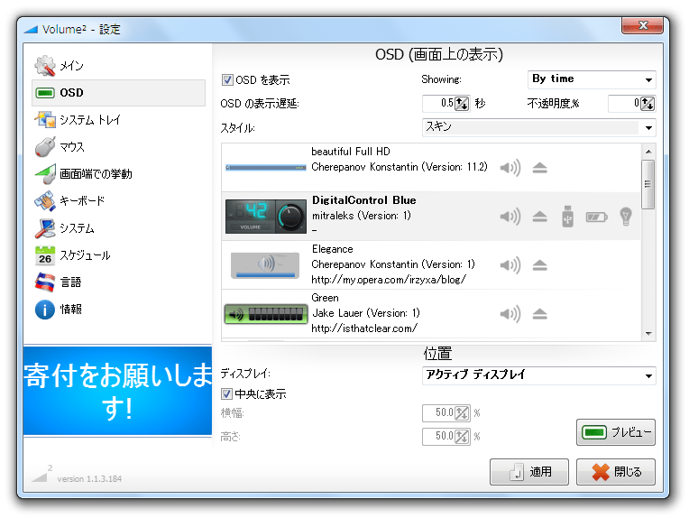 - ベータ版には、トレイアイコン / OSD / ピークメーター のスキン、および、音量変更時の効果音 が