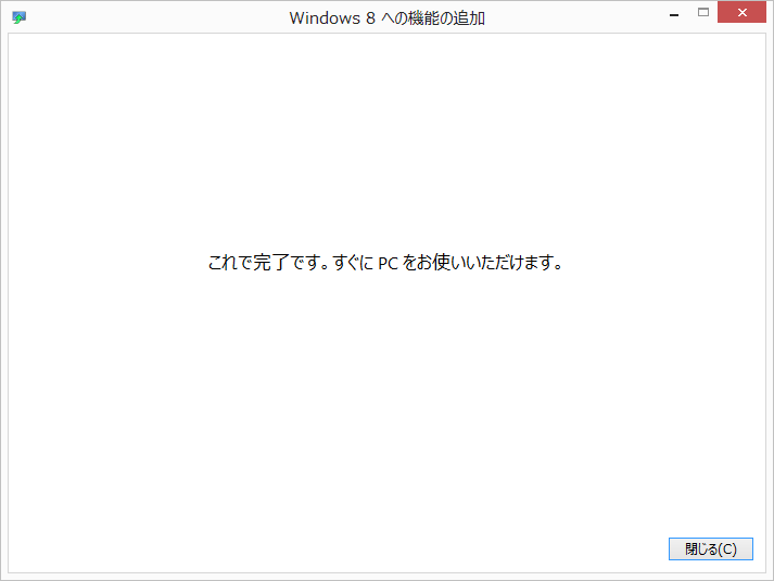 これで、Windows 8 Media Center Packのインストールが開始します。インストール終了後にWindows8が再起動するので、起動中のソフトはあらかじめ終了しておきましょう。