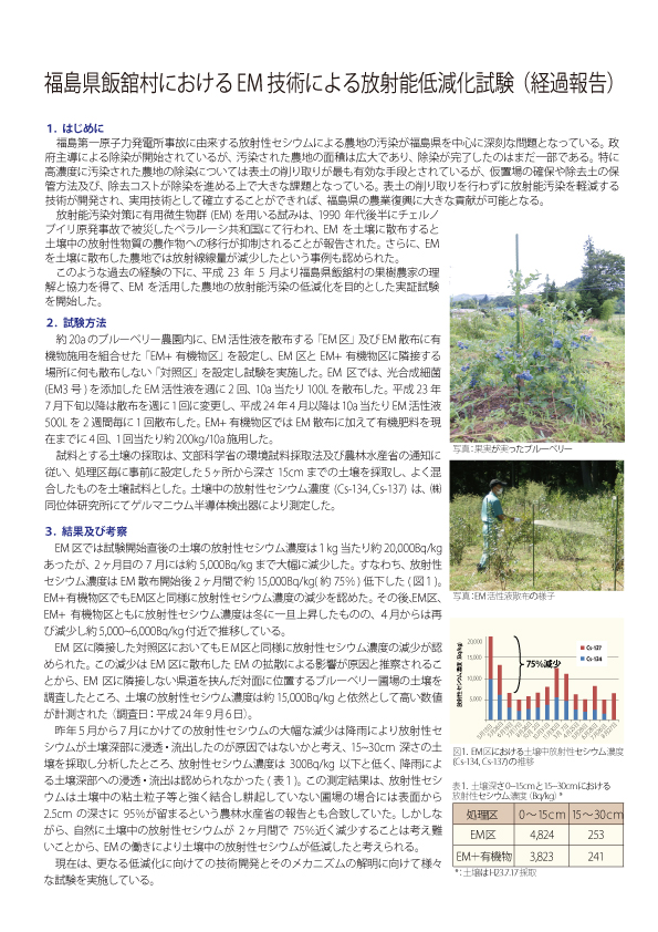 福島県飯舘村におけるEM技による放射能低減化試験(経過報告)