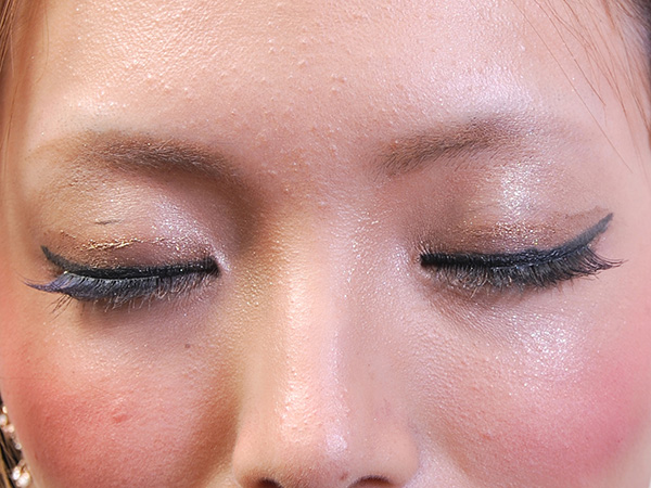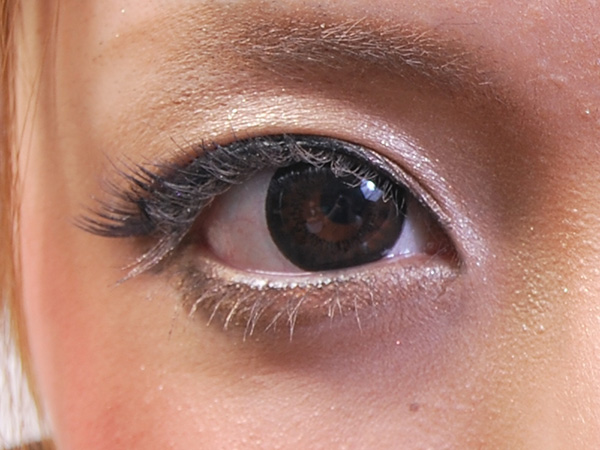 【2】つけまつげは目尻側をはみ出すイメージでオーバーに。