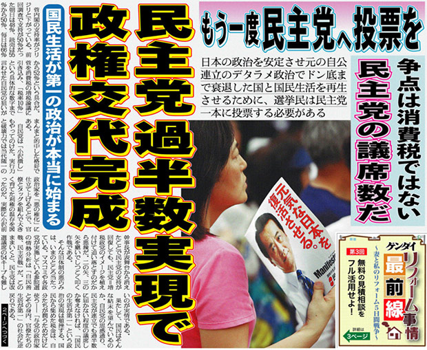 ゲンダイ、民主党への投票が最良の選択