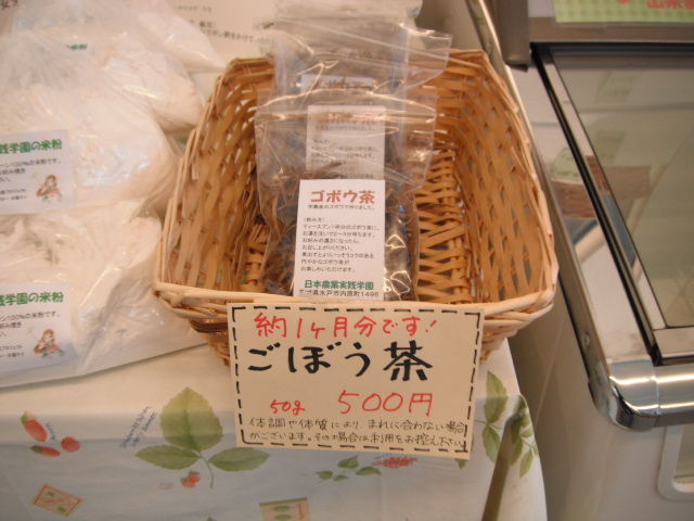 2012年12月06日 ごぼう茶 ごぼうを薄く切って天日干ししたものを、お湯で煮だすとごぼう茶が出来上がります。来店してくれたお客様へのサービスとして試飲をお出ししたところ、好評いただきまして販売を開始しました。直売所では店内で試飲ができます。お店のスタッフも毎日飲んでいて、最近肌艶が良くなってきたような気もしますが、気のせいかもしれません(笑)。 < 前の記事 コメント コメント一覧 1. anonymous 2012年12月13日 11:46 「適切に使用すれば安全」と評価されているようですが、キク科アレルギーのある人は注意が必要とのこと。抗コリン系の副作用(口渇、めまいなど)の報告があり。 コメントフォーム 名前 メール URL コメント 評価する リセット リセット 顔 星 投稿する 情報を記憶