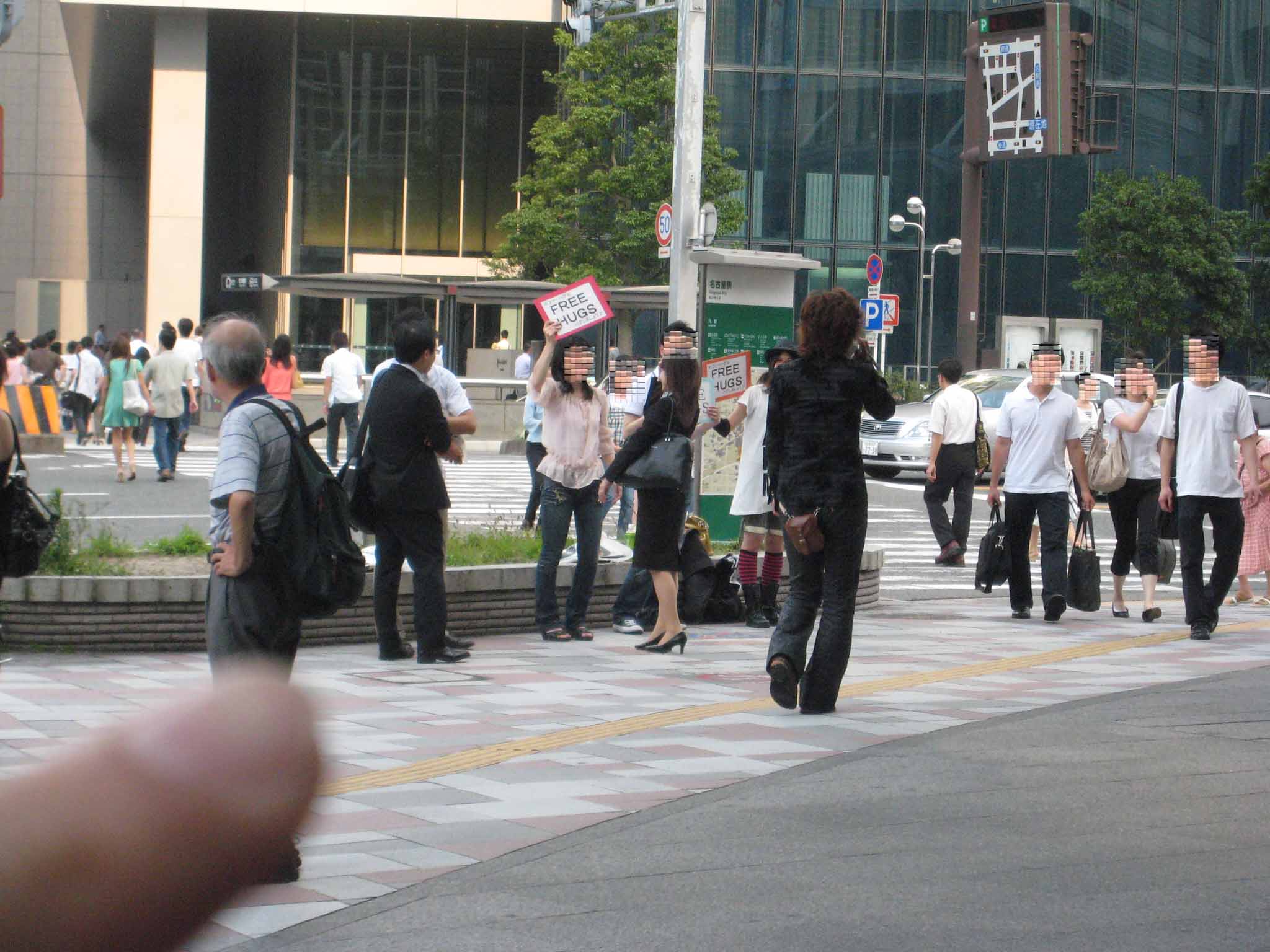 今回は俺の原作本を元にしたインタビューで、1時間半ほどの取材を受けた後、再び名駅前に戻ると女性2人の他に男性2人が加わり合計4人で「FREE HUGS」をやっていた。