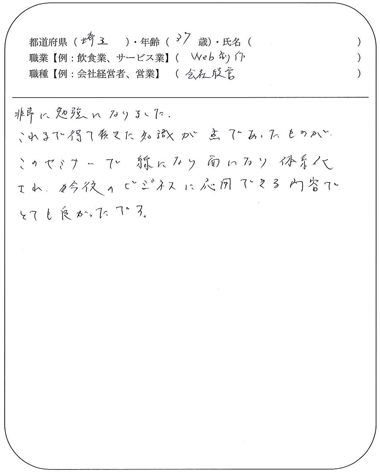 私自身のビジネスにうまく生かすことができるよう