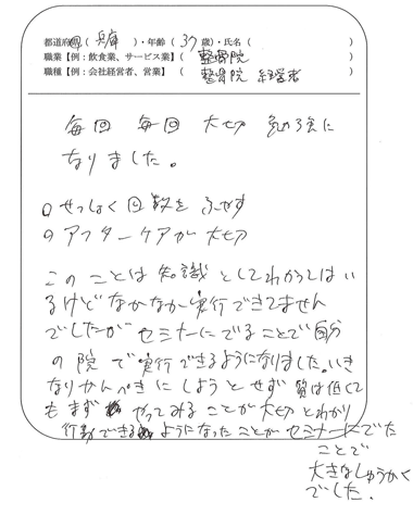 セミナーにでることで自分の院で実行できるようになりました。