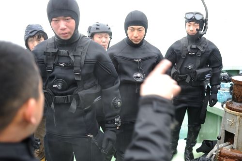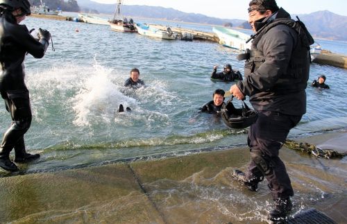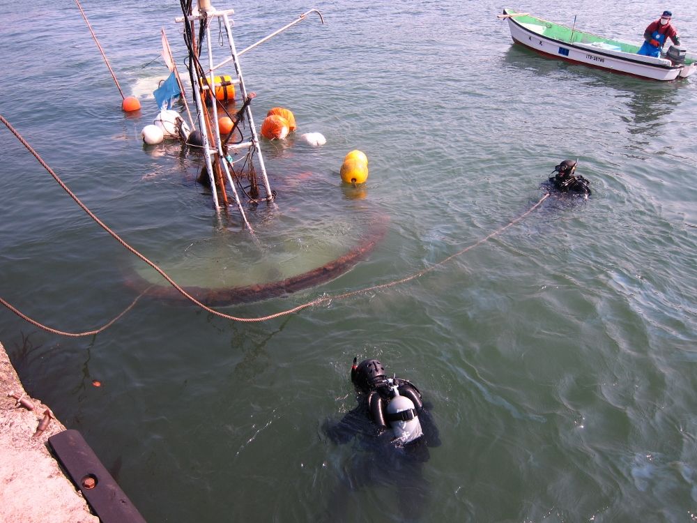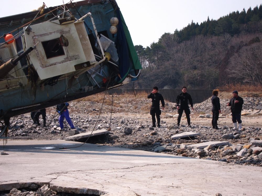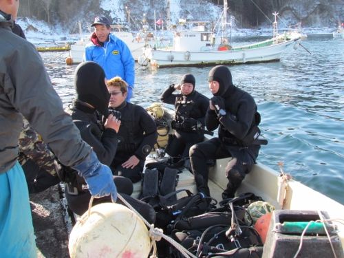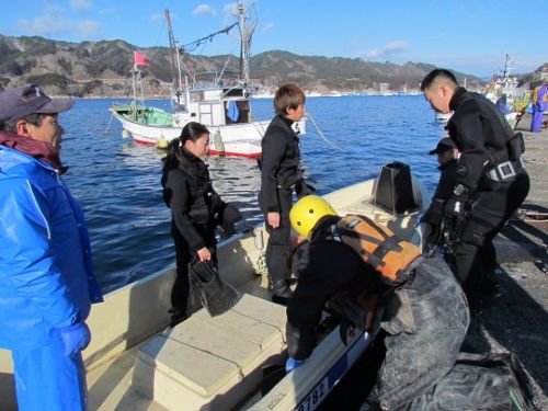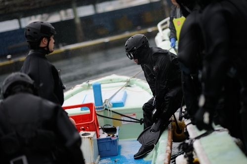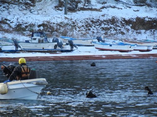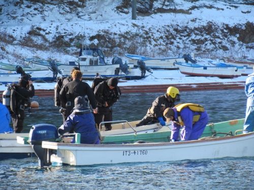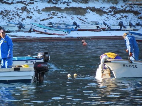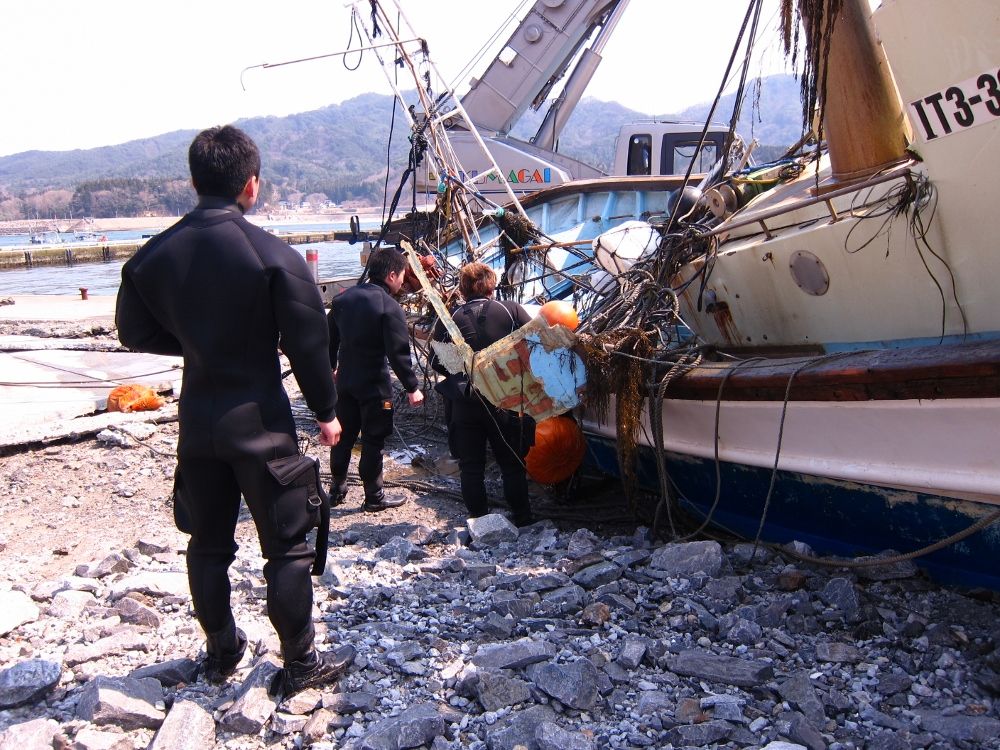 船越漁協から、山田町の山の内漁港で漁船「輝丸」が転覆し海中に沈んだため引き上げに協力してほしいとの依頼を受け、特務中隊は引き上げ作業に向かいました。