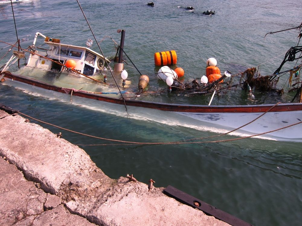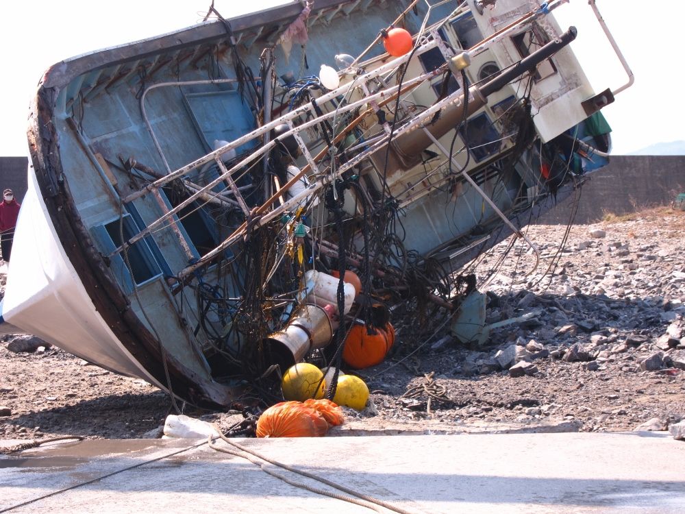 「春の嵐」はこんな大きい漁船が完全に沈むほど勢力が強かったんですね・・