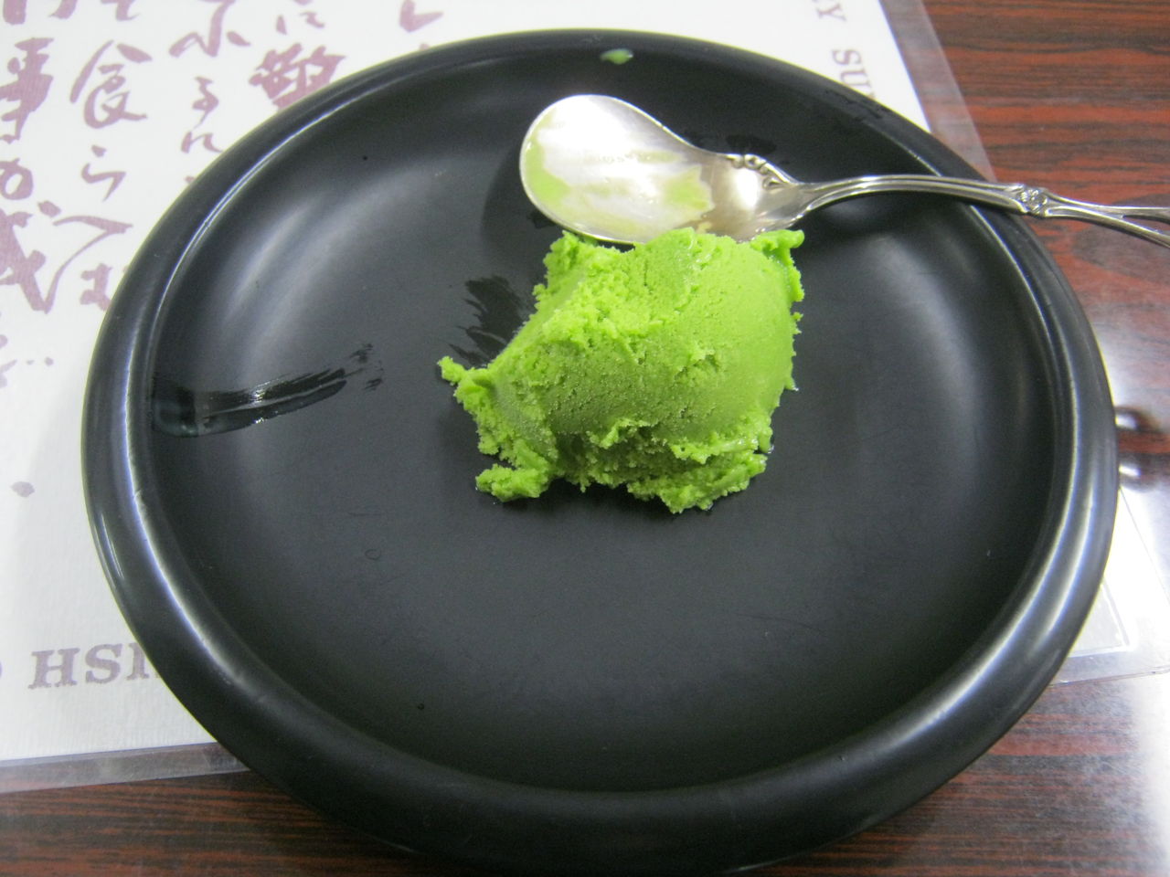 「はい、どうぞ。サービスですよ」と、抹茶アイスを出してくれた。