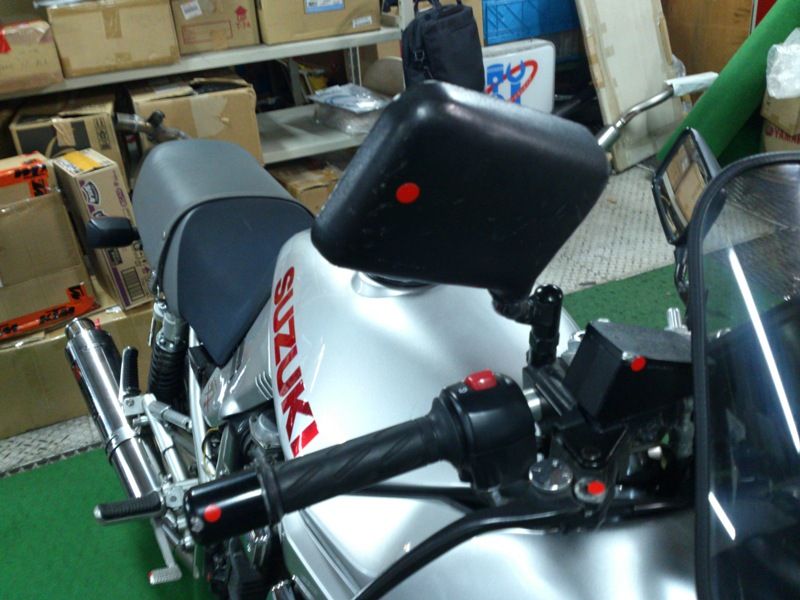 赤丸シールが示すようにブレーキレバー、ハンドルエンド、リザーバータンク・・右側全部じゃないですか。