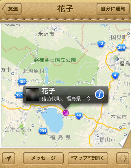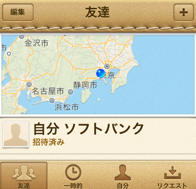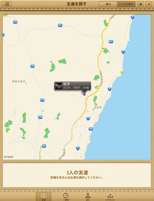 左下の「友達」は、すでに「友達を探す」に登録してある友達がマップ上で表示されます。