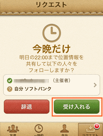 この時間内であれば一時的に許可した相手の位置を知ることができます。