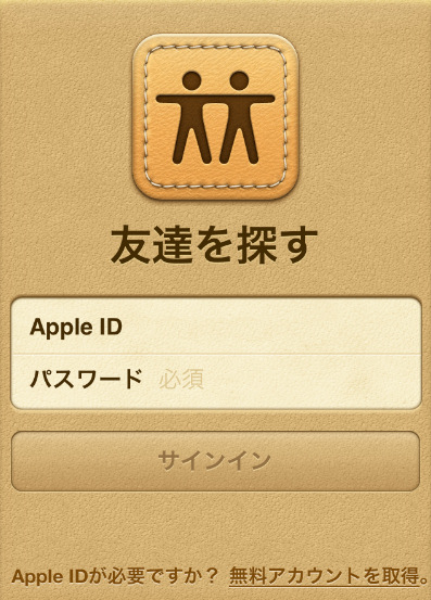 友だちを探すは、Apple IDを利用して管理されるため、はじめにApple IDでログインする必要があります。