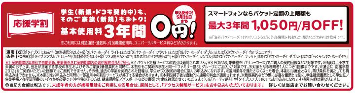 「応援学割2013」および「学生家族いっしょ割」