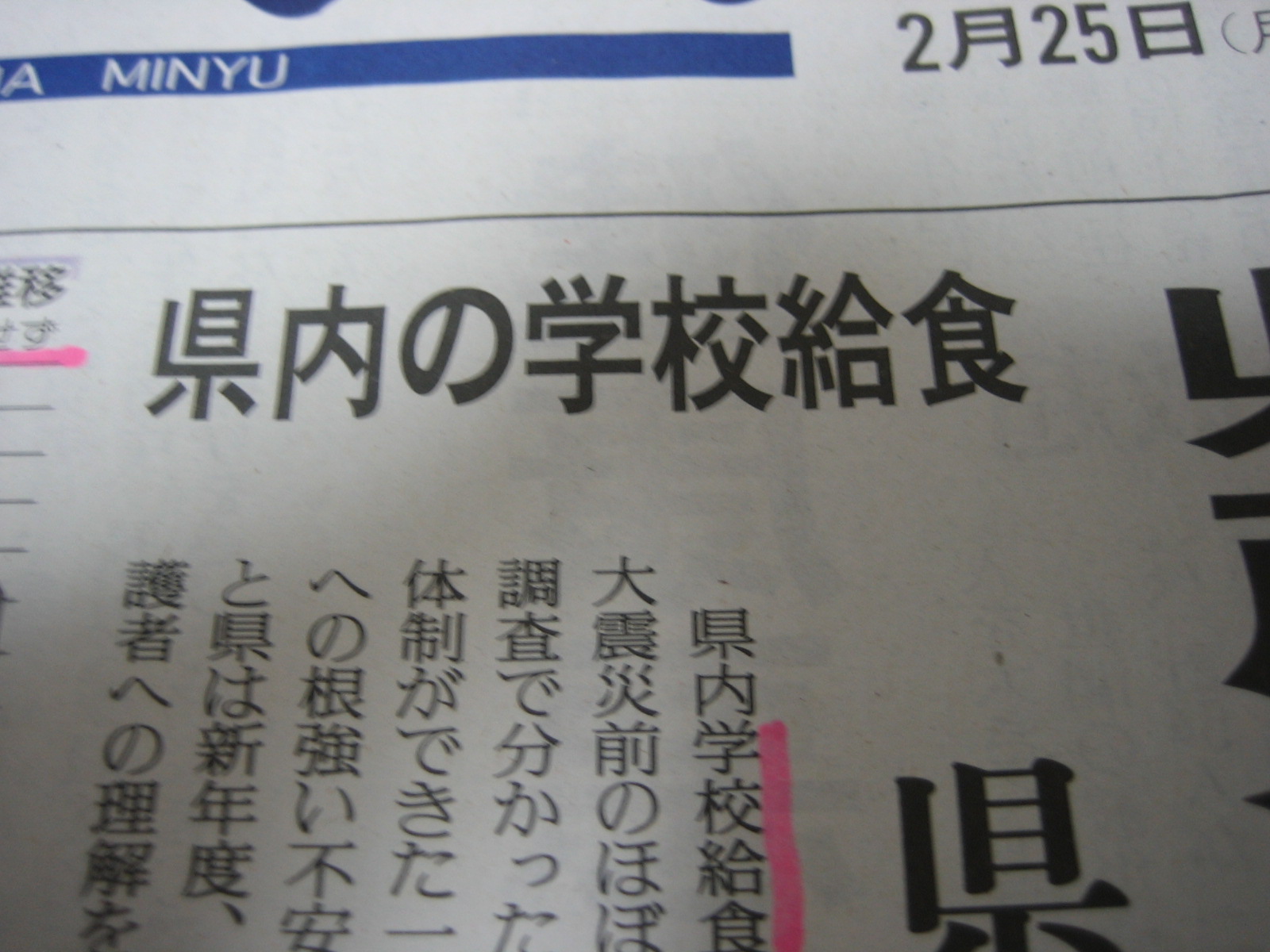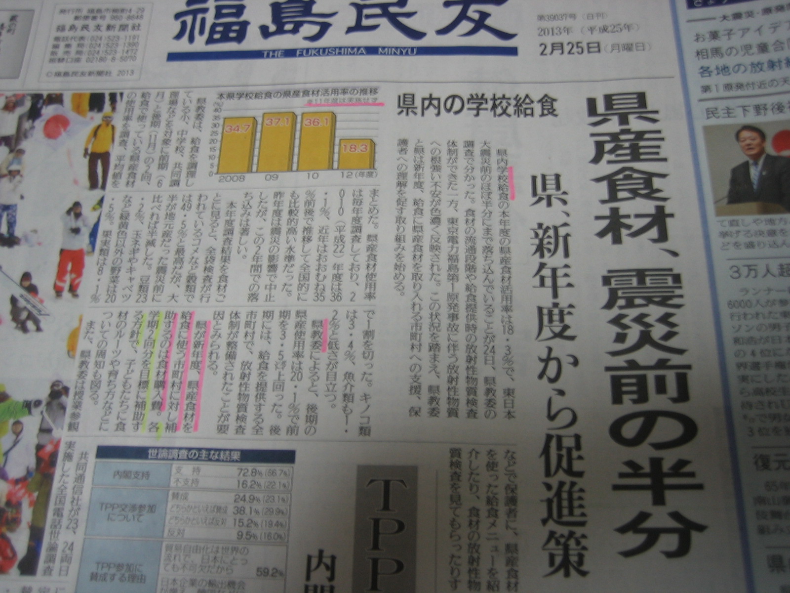 ◎ 地方紙 『 福島民友 』 2月25日(月) より、 一部抜粋。