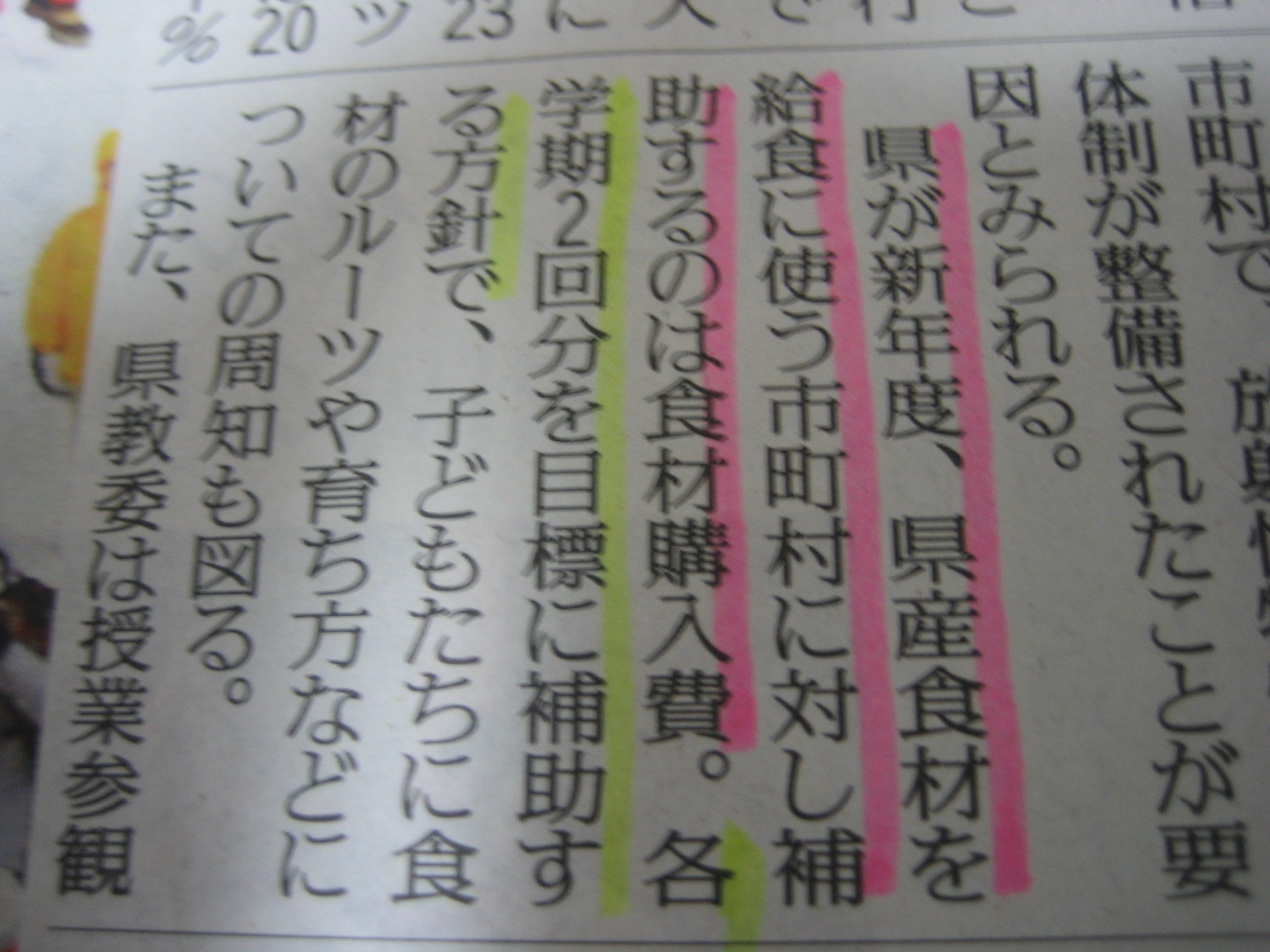 「 学校給食 購入 」 に対して、「 補助金が出る 」 など、
