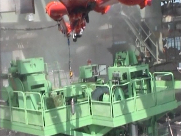 燃料プール上に放置された燃料棒交換機
