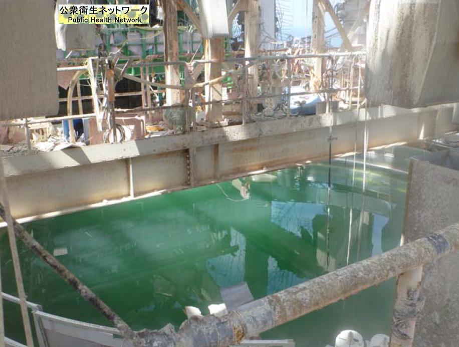 4号機の使用済核燃料プールには湯垢が目立たない