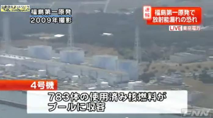 4号機が爆発した3月15日、東京電力は4号機の核燃料プールに783本の核燃料があると発表したが、保安院は4号機には1535本の核燃料があると発表した。
