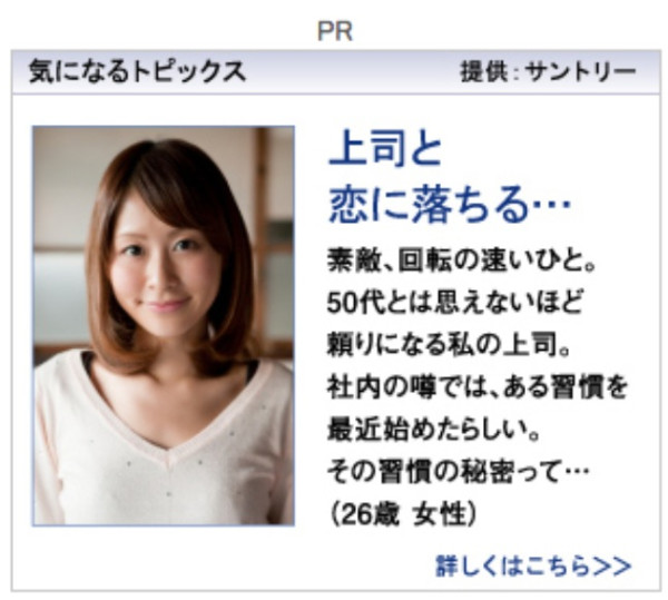 さて、ここから、サントリーウエルネスの不快広告を1つずつ取りあげていきます。まずは比較的に穏当なほうから順番に見ていきましょう。
