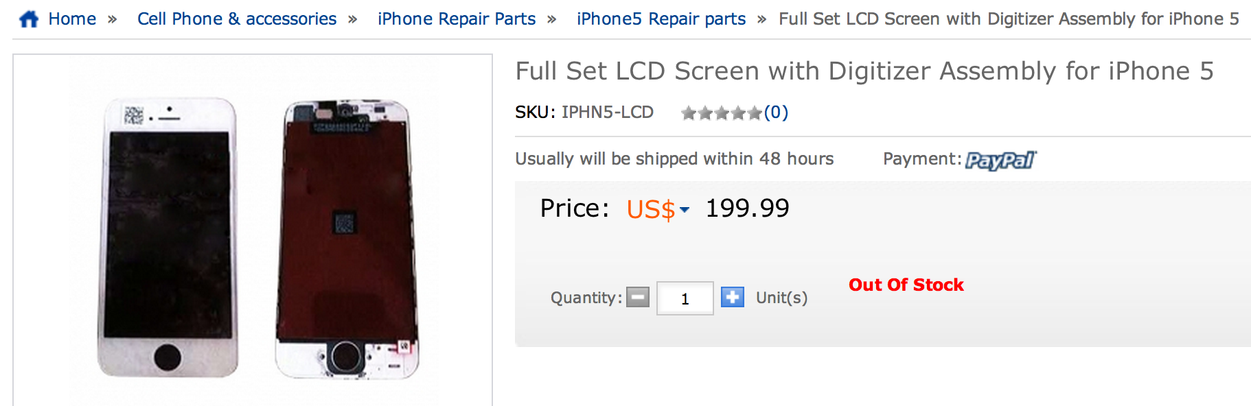 iPhone5向けの液晶パネル部品が販売されていると伝えています。ただし、日本時間20日22時過ぎには売り切れてしまったようです