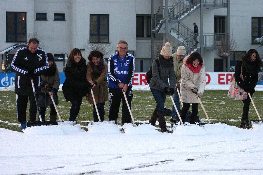 >シャルケは雪のため12日の練習開始を10時から15時に延期。その間に、クラブは除雪を委託したが、