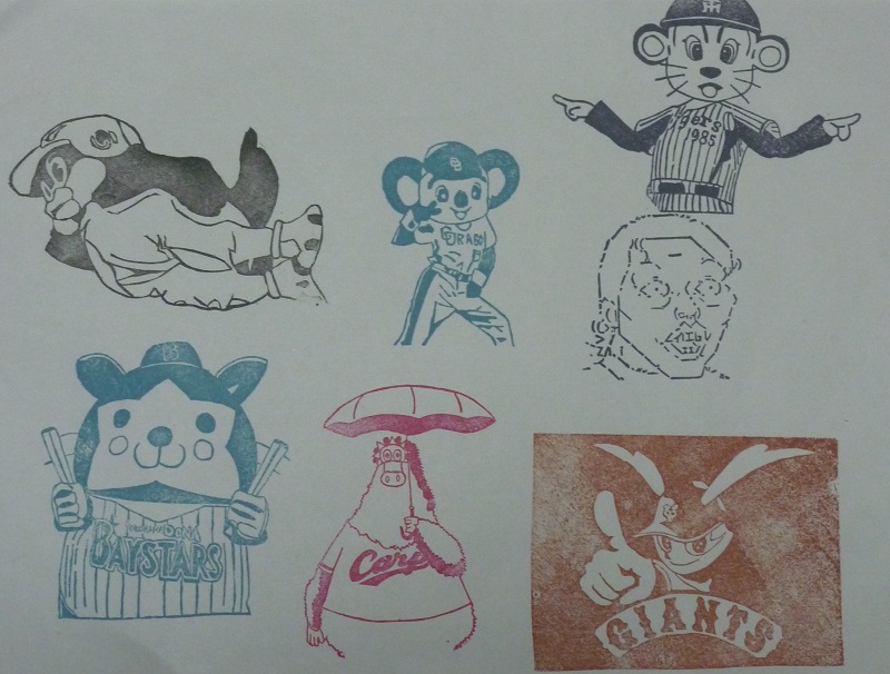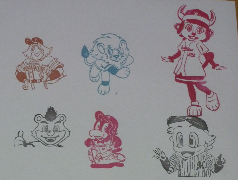 12球団マスコットの消しゴムハンコ作った