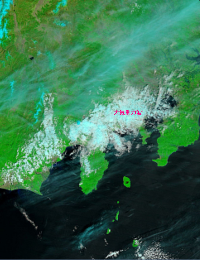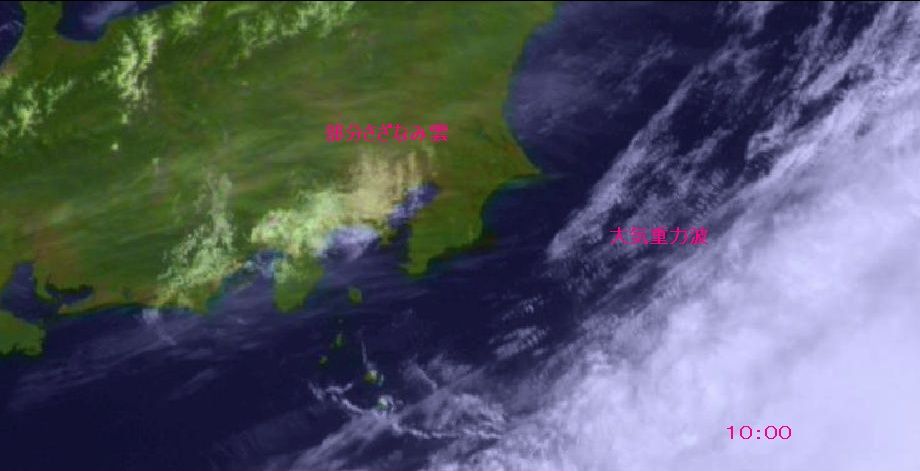 愛知県から東京付近に一日中張り付いていた、大気重力波、少し気になりますね。