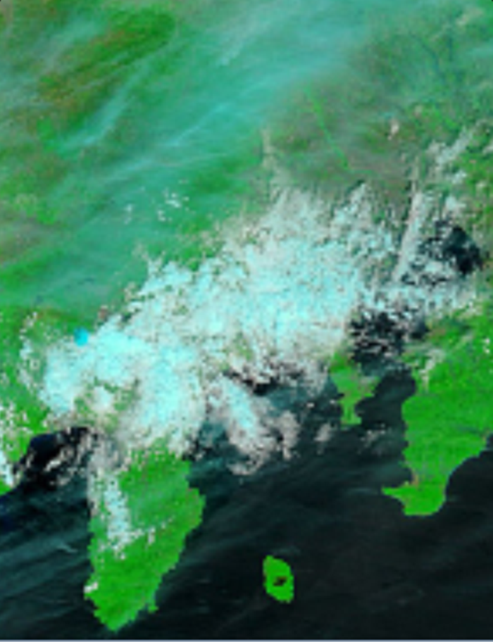 衛生画像で見てみると、愛知と福島で撮影された雲は、なんと、ずっと架橋していたのです。