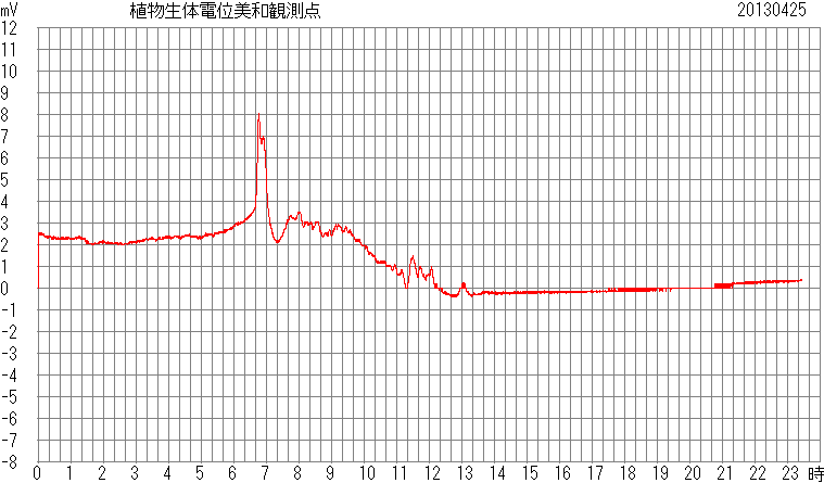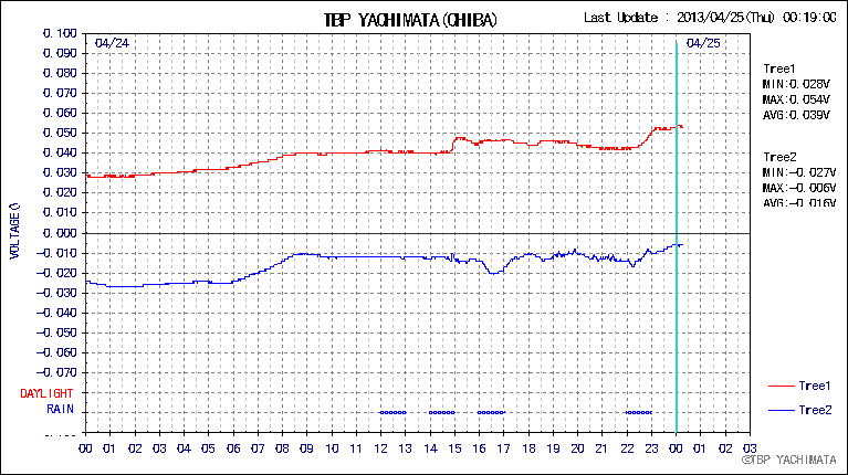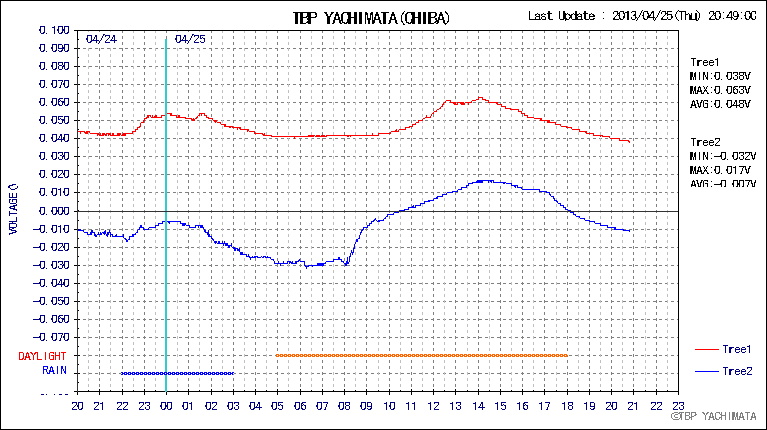 八街観測点、植物生体電位 tree2深夜から早朝にかけて震えるような変動が見られました。