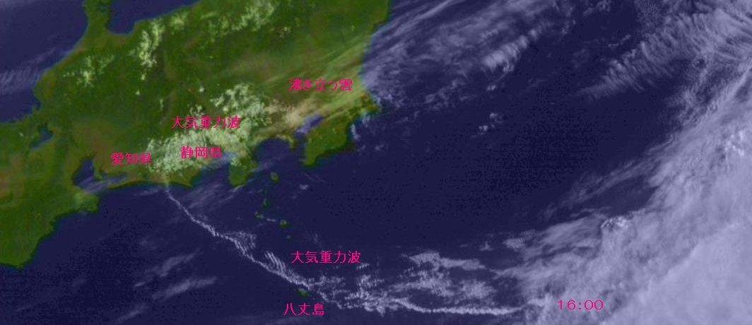八丈島付近にも大気重力波が見られます。