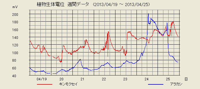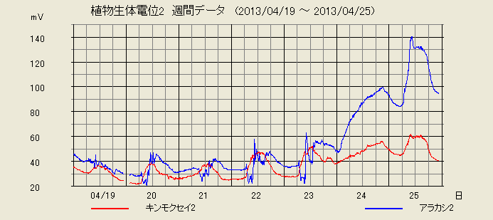 京都観測点のアラカシも電位を大きく上げています。