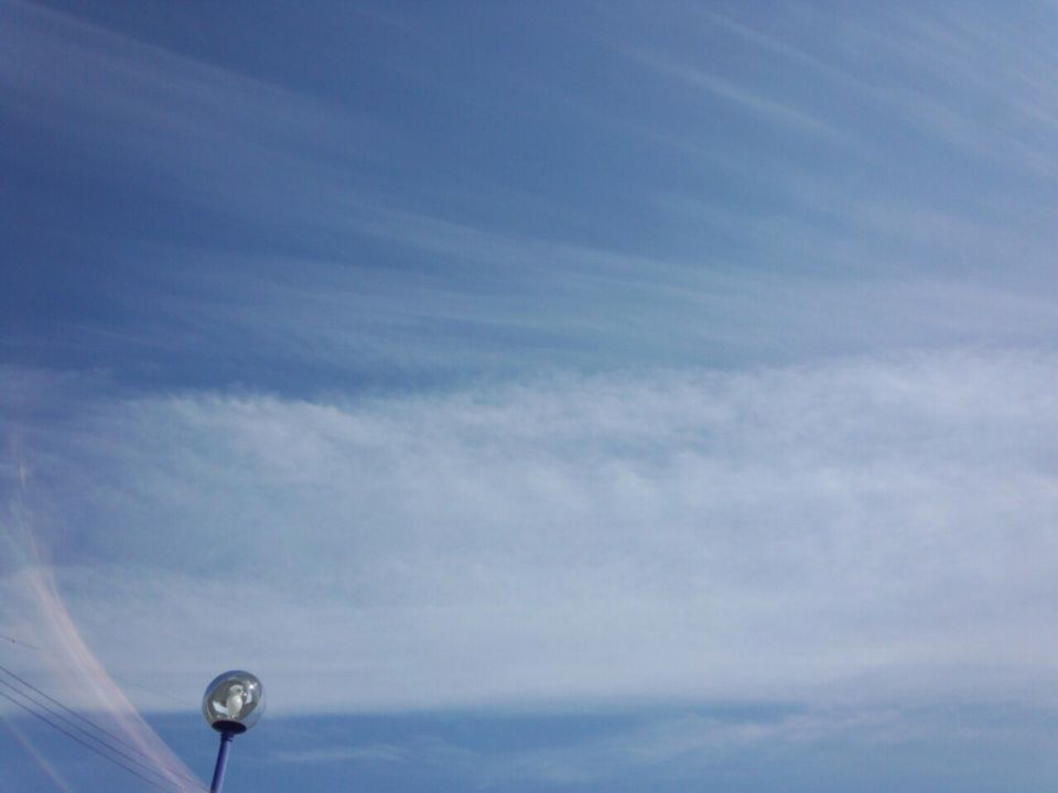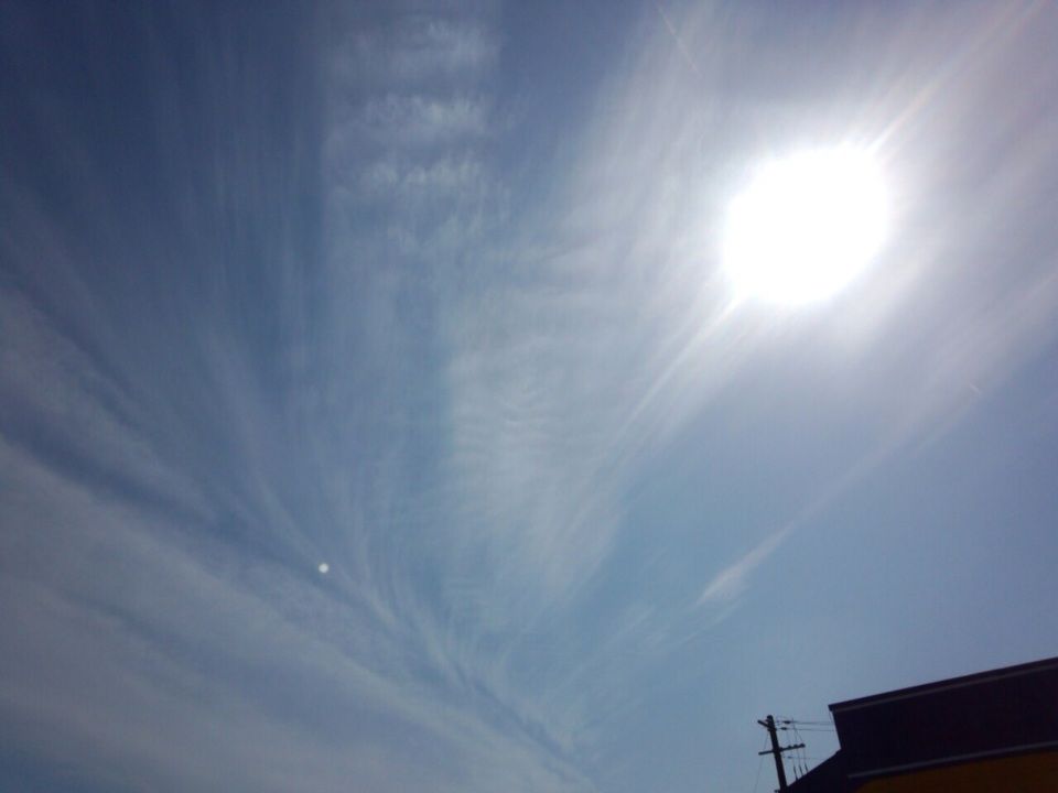 シマシマの薄雲が ちらりと見えています。また、帯電しているような雲の色でした。