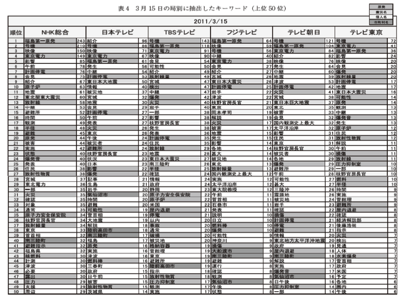 2011年東日本大震災直後のテレビ報道の基礎的分析』