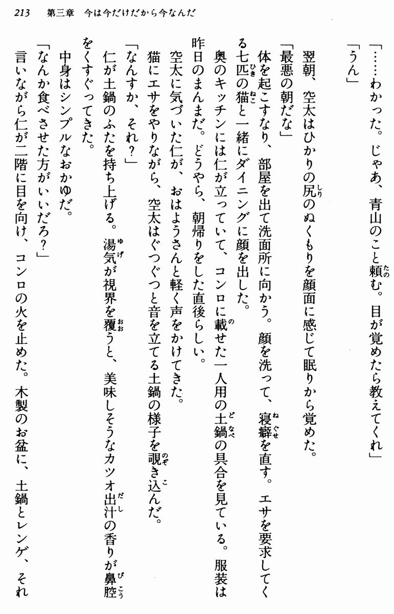 仁が土鍋のふたを持ち上げる。湯気が視界を覆うと、美味しそうなカツオ出汁の香りが鼻腔をくすぐってきた。
