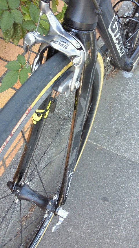 フロントフォーク交換で、ブレーキアーチがショート仕様になり、105 のブレーキアーチに交換。