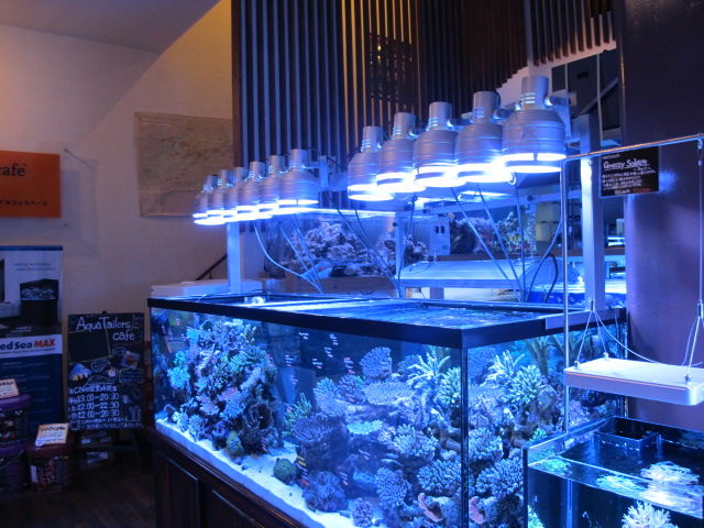 サンゴ水槽はヒーフーミー・・15本くらいあるかな?照明はこの深場水槽以外は全てT5