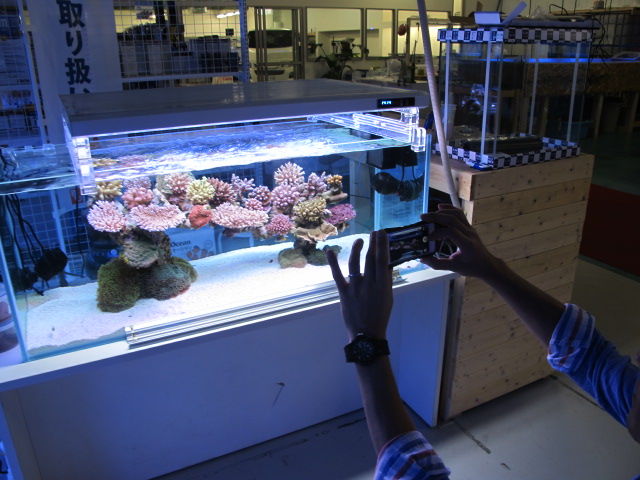 マリンギフトの展示水槽とT5灯具をエーエイトさんはとても興味があったそうで