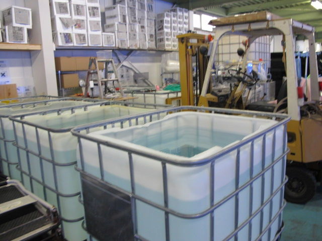 1個が1トンのローリータンクが10個あります。と言う事は10トンの水換え^^;
