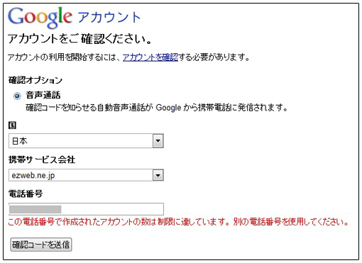 この電話番号で作成されたアカウントの数は制限に達しています。