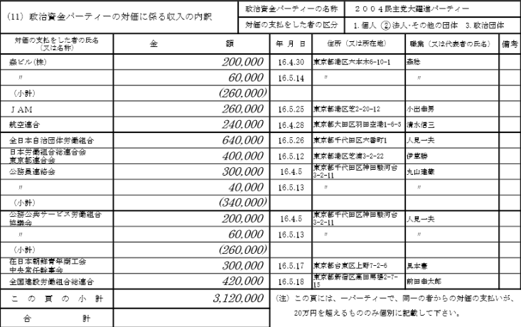民主党大躍進パーティーの献金一覧にパチソコ企業や在日本朝鮮青年商工会の名が見つかる