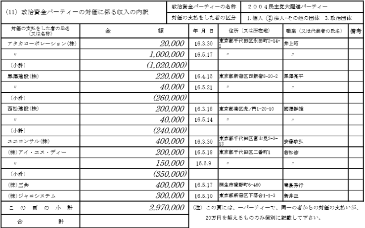 民主党大躍進パーティーの献金一覧を見て欲しい