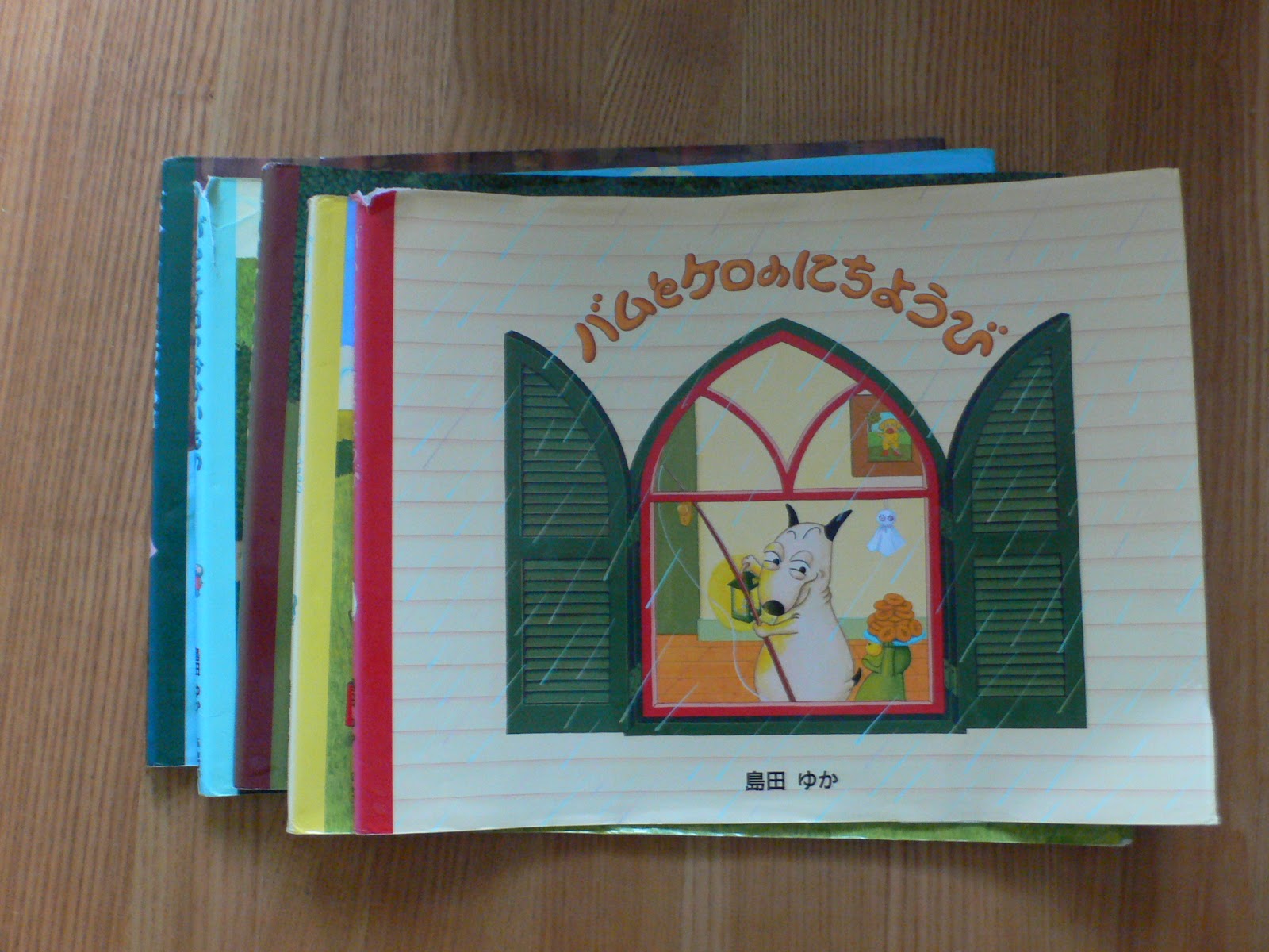 「バムとケロ」シリーズの絵本のカバー5冊分です。