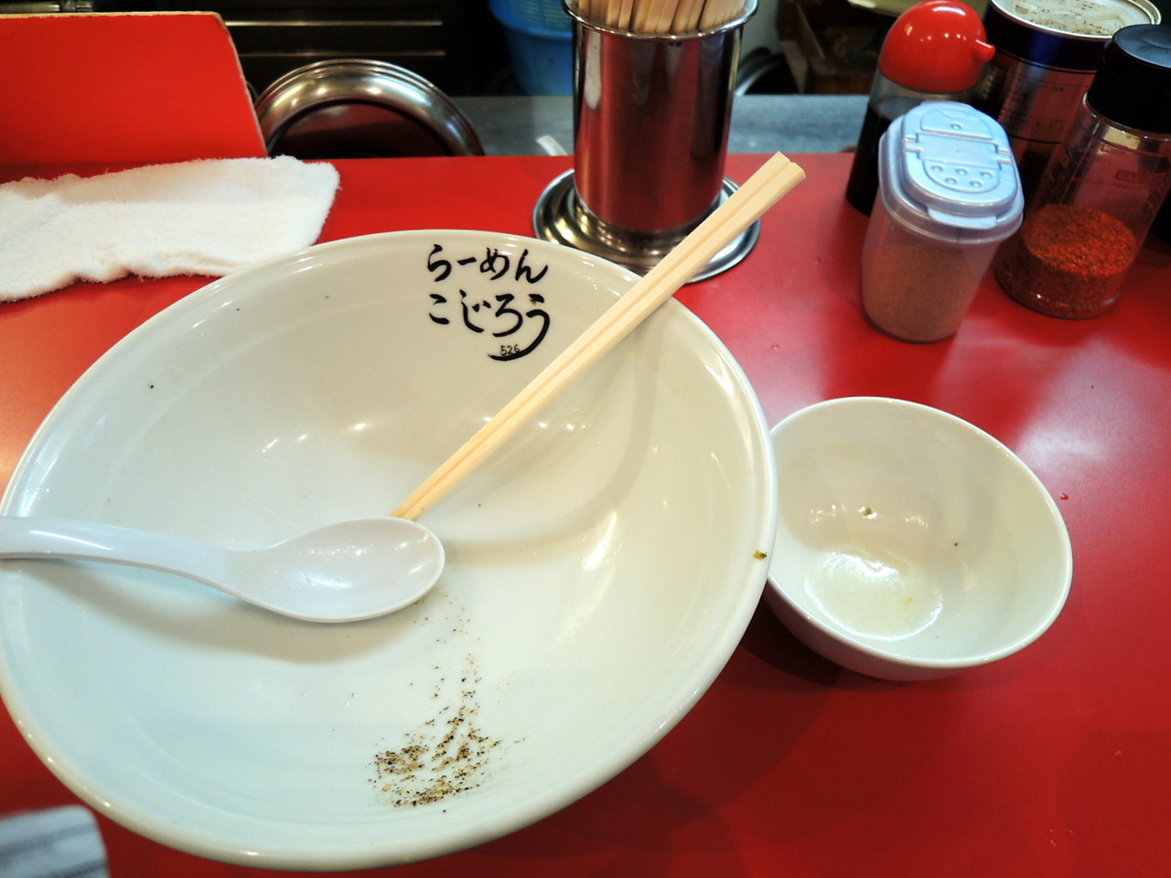 非常に豊富な卓上調味料(醤油、コショー、一味、魚粉、ラー油)を使うこともなくするする……