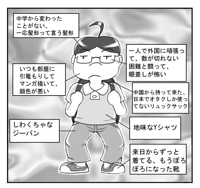 そして、自分の格好を見ると、すぐ来日ばかり時と同じような劣等感に浸かった。