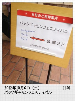 でもって2F。あ、この人確か、日本バックギャモン協会のキャンペーンガールの人だー。何故写真撮っておかんか俺も、と今さら後悔しつつ、誘導に従って会場へ。