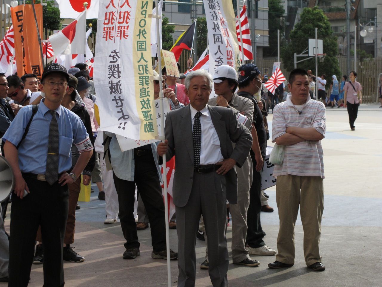 日本国民のデモ参加者に対して集団で襲いかかり、ベンツでデモ隊に近づいたり入れ墨をちらつかせ恫喝を加える。今我々愛国者はネット上でも脅されたり安全な暮らしが出来ない状態にあります。